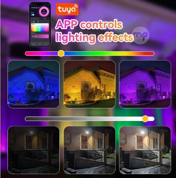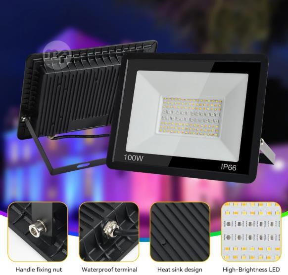 100W TUYA RGB LED Floodlight Smart Control APP Dimmable Landscape Lamp Outdoor Waterproof Spotlight