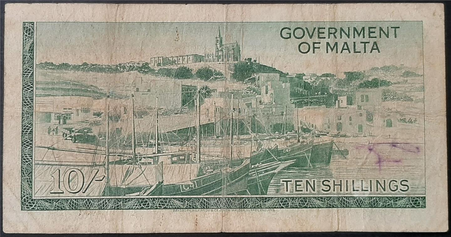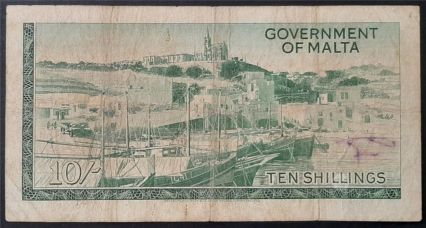 MALTA - GOVERNMENT OF MALTA ELIZABETH II TEN SHILLINGS BANKNOTE signed SOLER (SCARCE)