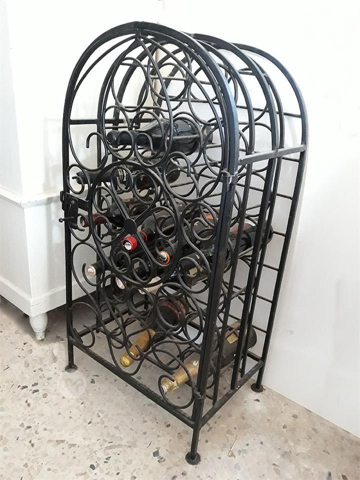 : Ferrobattuto wine rack, can hold 27 bottles. Very nicely crafted with hinged door. Measures 92cm X 48cm (36 X 19 ins) Very solid.