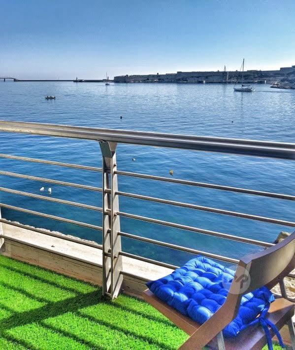 Seafront, seaview, on the water's edge in a swimming area, with magnificent views of Valletta, the Grand Harbour, Esplora Museum and Kalkara Creek. Part of the complex of St Angelo Mansions.