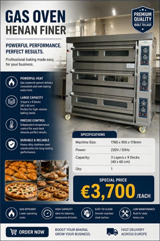 Stainless Steel Rectangular Gas Baking Oven 3 Deck 6 Tray, For Commercial,