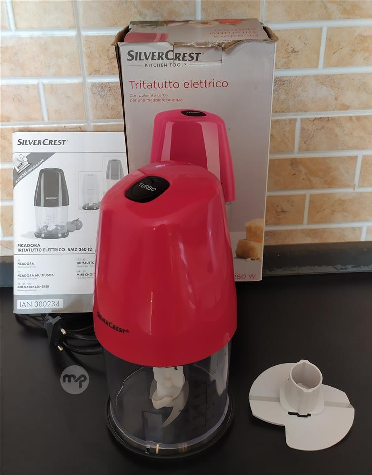 Mini chopper for herbs, onions, nuts etc. Whisk attachment included. Removable blade made from stainless steel. Removable base can be used as lid. Power 250W. Suitable for dishwasher.