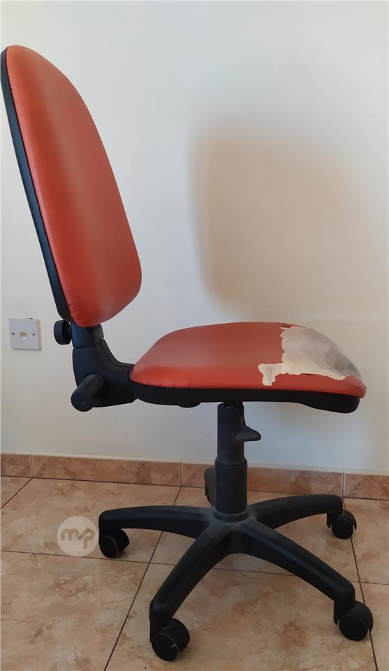 Office chair, mechanism PERFECTLY WORKING. Seat top cover ripped, but foam intact.