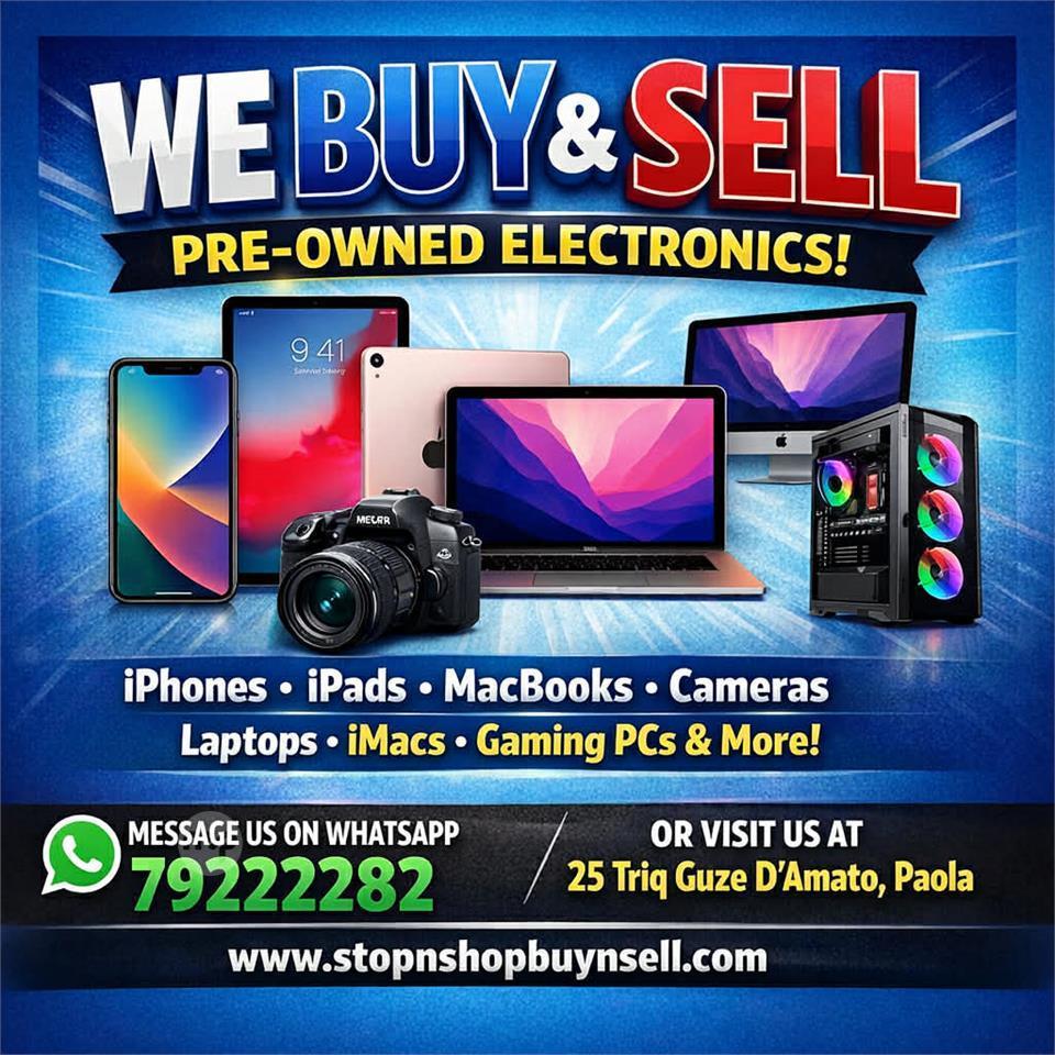 Looking to buy or sell used electronics? We deal in phones, laptops, cameras, iPads, MacBooks, PCs, and more! Whether you're upgrading your gadgets or looking for a great deal, we're here to help. Message us on WhatsApp +356 79222282 with what you're interested in buying or selling, and we’ll assist you every step of the way. Fast, reliable, and hassle-free!