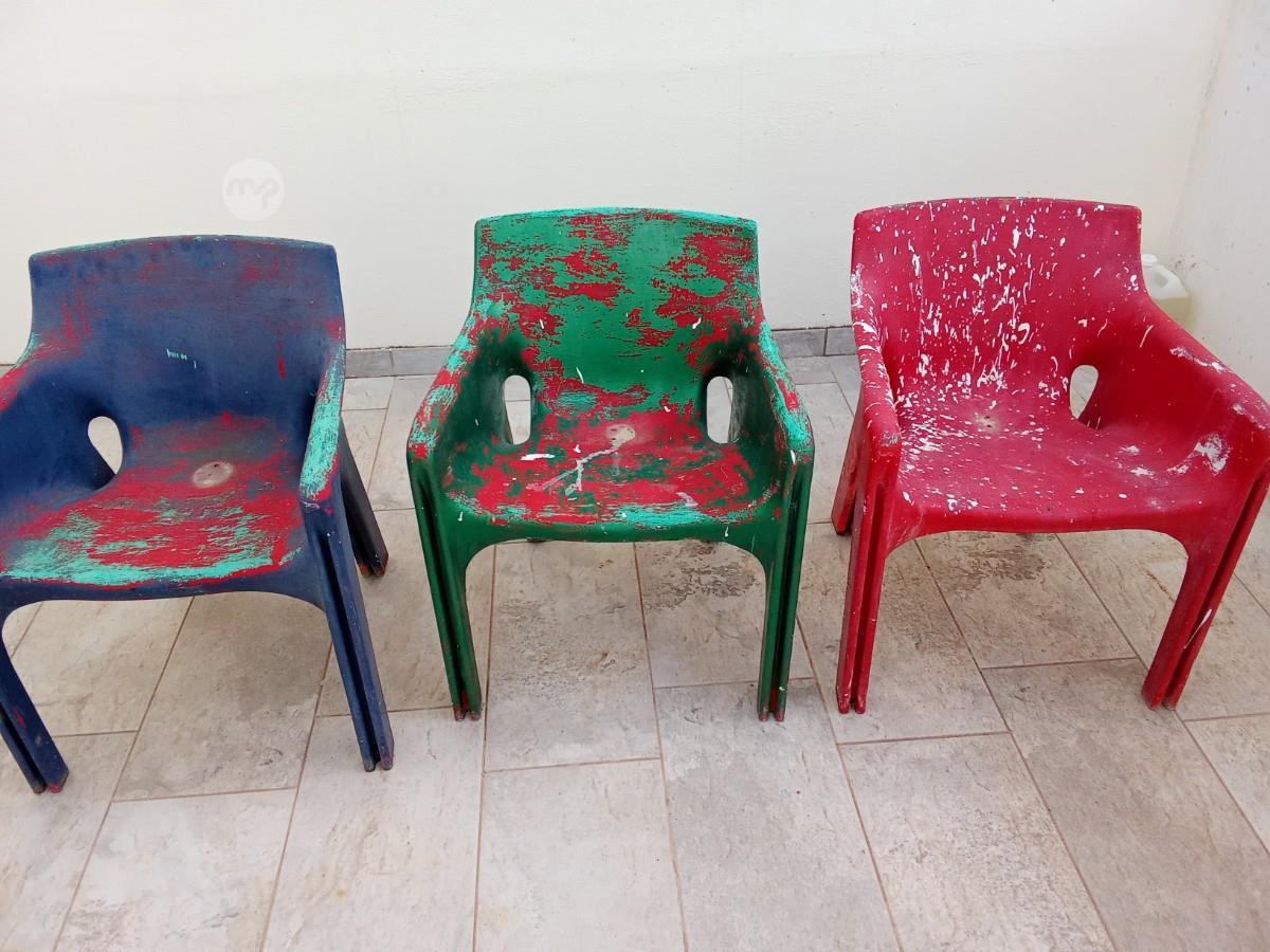 Heavy duty fiberglass chairs. all they need is painting.