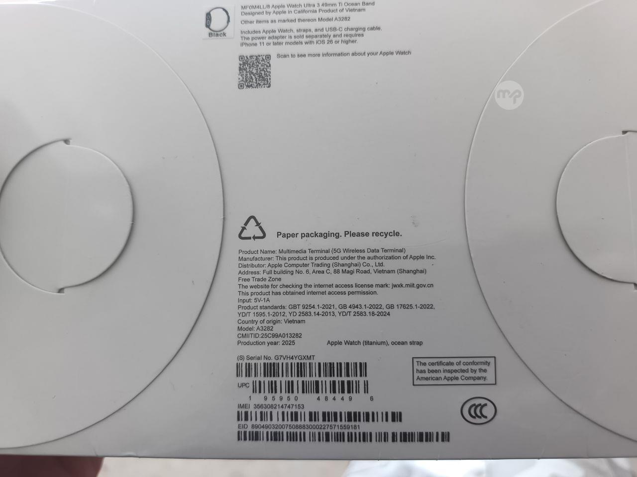 APPLE WATCH ULTRA 3 49MM 5G TITANIUM OCEAN BAND BRAND NEW SEALED