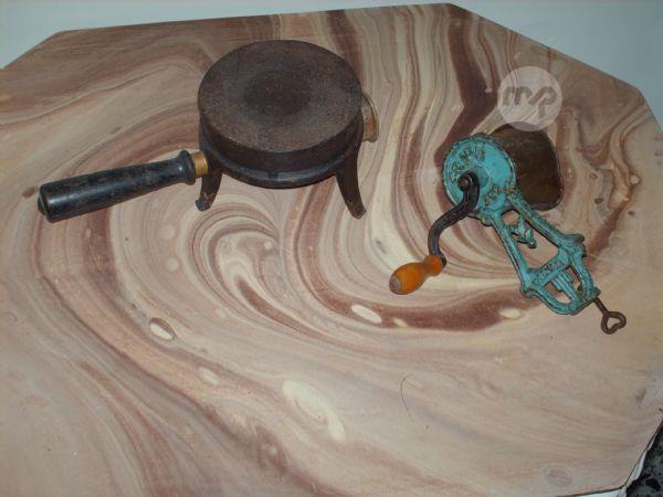 Old meat grinder and very heavy metal hotplate 1950's. 35 euro for hoth