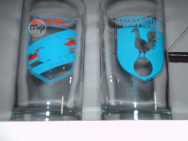 2 decorative glasses with football teams emblems