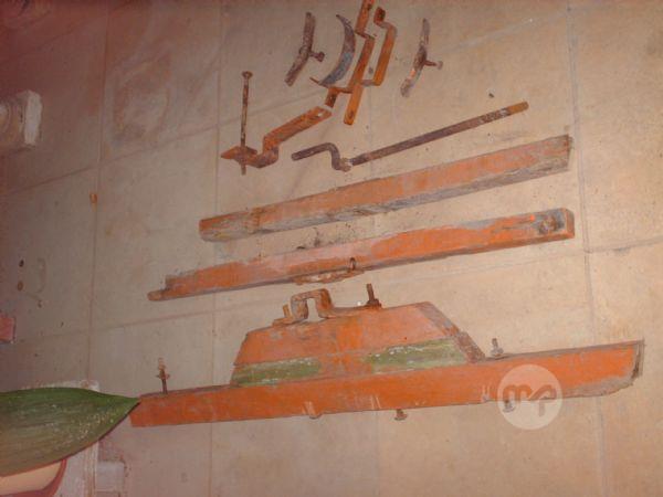 All metal pieces including shaft and bolts of a dismantled cart. Cart was attacked by mites. Everything is there. Picture shows some of the items. Only wooden planks needed. One wheel only. 35 euros for the lot