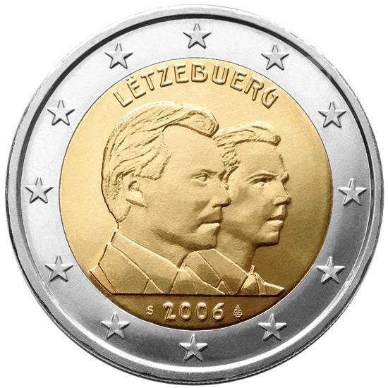 Brilliant2 euro commemorative coin of Luxembourg 2006 Uncirculated rapresenting Hereditary Grand Duke Guillaume.
