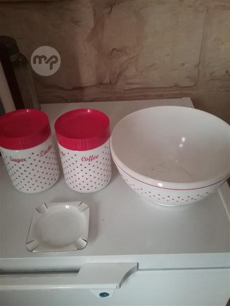 Matching Coffee pot, Sugar Pot both with lid and large Pyrex bowl
