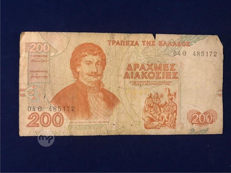 Banknote: Greece - 200 drachma banknote from 1996. Pre-euro