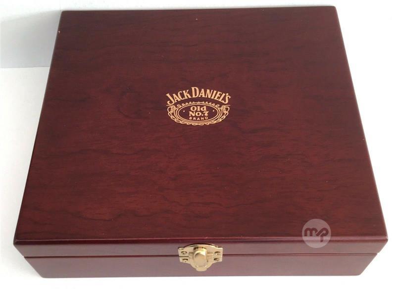 Jack Daniels - Wooden box set including Flask, 2 shot glasses, and miniature bottle