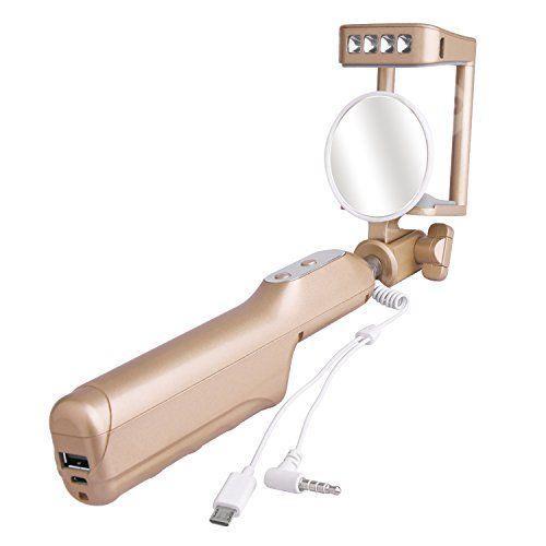 bluetooth Selfie Stick With LED Flash And Mirror with 3200mah inbuilt powerbank, Comes with usb and cover. Like the one in pic