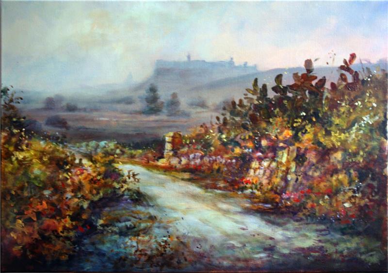 GHASRI COUNTRY LANE GOZO ----- ORIGINAL HAND PAINTED OIL ON CANVAS 70X50