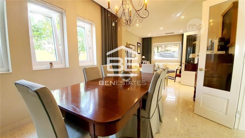 NEW ON THE MARKET!!!! San Gwann! Double fronted, fully detached villa built on a plot measuring approx. 325m² situated in a tranquil residential area bordering Mensija and Monterosa Gardens. The ground floor layout comprises of a welcoming entrance hall that leads to an open plan kitchen, living and dining area that opens up onto the garden and is ideal for entertaining. The layout continues with a formal combined sitting room and dining room, a guest toilet and a pantry. At first floor level the accommodation comprises of four double bedrooms, master with an en suite shower room and a guest bathroom. This lovely family home is further complemented by a washroom at roof level, a two car drive-in and a large garage as well as a mature garden all around. Freehold.