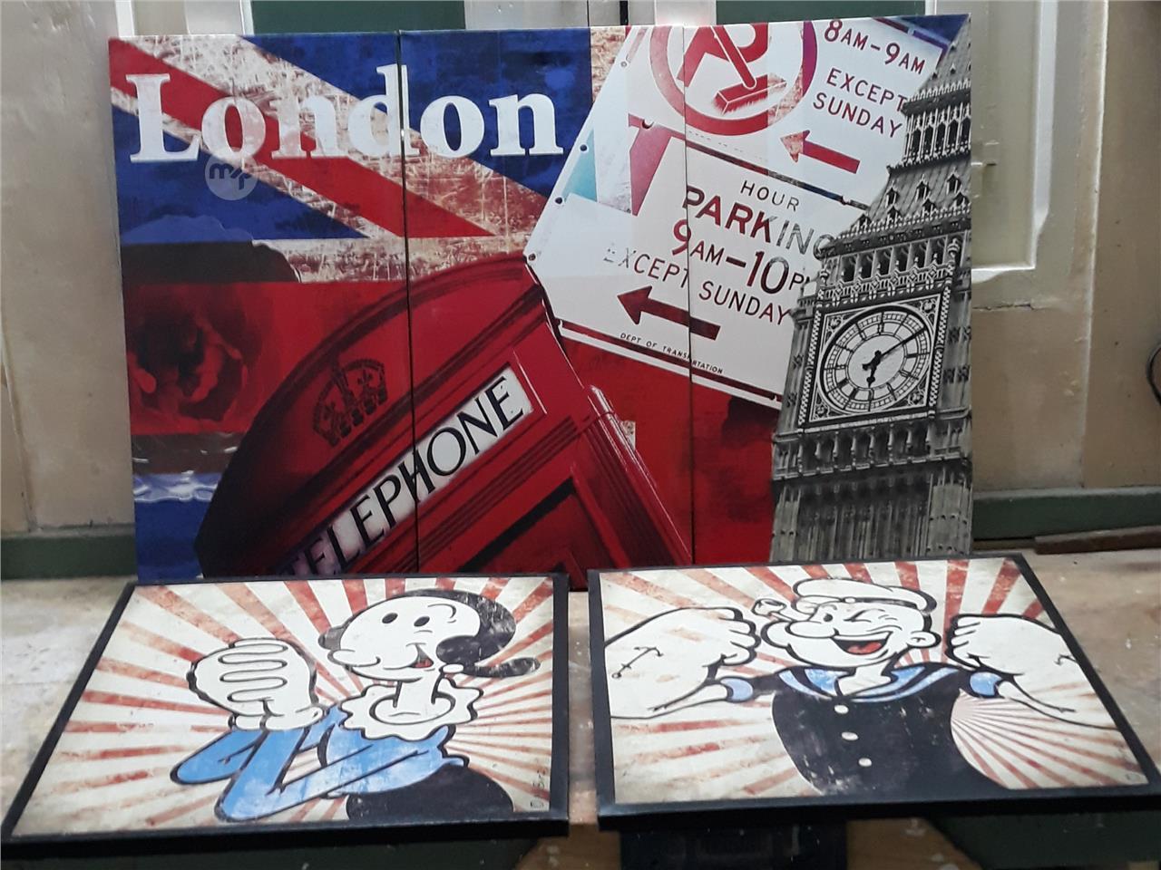 3 frameless London pictures- side by side measurements. 91cm x 61cm total.
