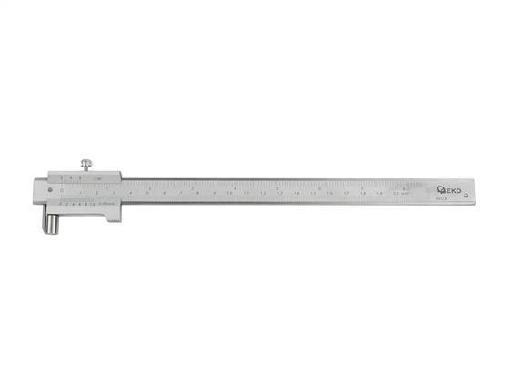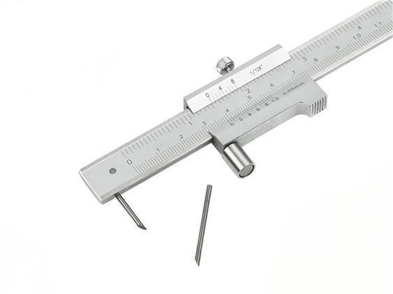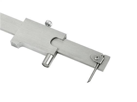 Scribing caliper with a working length of 200mm and an accuracy of 0.05mm. Designed for precise marking of auxiliary lines on processed materials. Particularly useful when drilling, milling, turning, etc. Made of stainless steel, equipped with a hardened steel stylus (second stylus included). The scale is given in mm and inches.