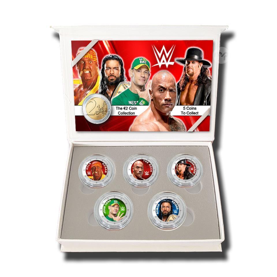 2 Euro Coloured Coin Set of 5 in Presentation Box - WWE legends