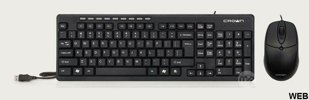 Keyboard and mouse with cable kit Crown PC keyboard and mouse kit with cable, USB 2.0 interface. Crown brand, supplier code: CMMK-521 Headboard features Material: ABS 1.45m cable Dimensions 415x143x20mm Weight 375g Soft touch key design Mouse features 1000 DPI USB 2.0 interface Dimensions 116x65x38mm