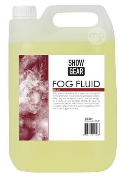 Fog machine liquid 5l This water-based liquid is specially designed for fog/smoke machines to produce white fog, safe for stage entertainment, clubbing or as a special effect.It does not have an unpleasant odor and does not leave any oily residue. Non-irritating and non-flammable.Reliable for performers and compatible with most fog machines.Warning: Keep out of reach of children! Do not swallow! Characteristics Brand: Show gear EAN code: 8717748019417 Supplier code: 60629 5l tank