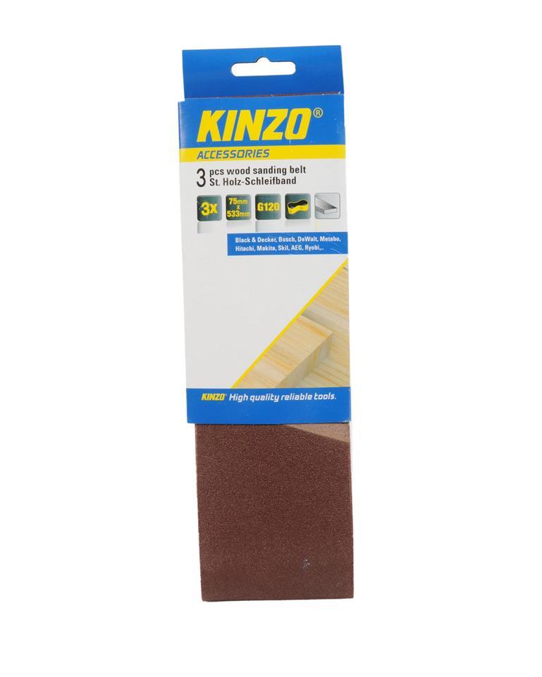 Set of 3 abrasive sponges for Kinzo polishing machines EAN 8711252717524 High quality Grain size: 120 Suitable for use on all types of wood and plywood Measurements: length 533mm, width 75 mm Includes 3 pieces