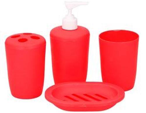 4-piece bathroom set various colors Bathroom set consisting of 4 pieces, various colors available. Components set Liquid soap dispenser, capacity approx. 250ml Toothbrush holder, diameter of 7cm and height of 10cm Soap holder, about 13.5x10cm Tumbler for rinsing, capacity about 250ml Features EAN code: 8711252059877 Material: plastic Colors: blue, green, red, purple a
