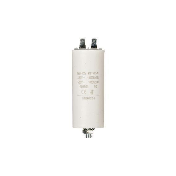 Capacitor 25uF 450V with M8 terminal Product Specifications Brand Power-it EAN code 8053323554295 Model W1-11025N Capacity 25 uF Length 70mm Terminal M8 Condenser diameter 38mm