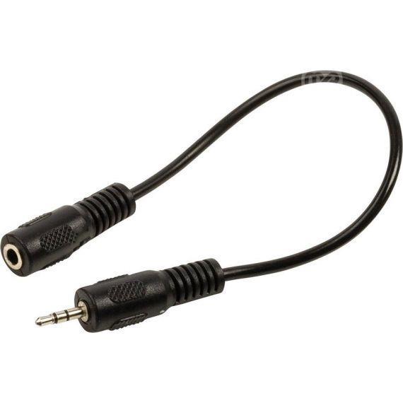 2.5mm Male - 3.5mm Female Audio Jack Adapter Cable Characteristics Brand: Valueline EAN Code: 5412810191543 Supplier code: VLAP21250B02 Connector A: 2.5mm audio jack Connector B: 3.5mm female audio jack Cable length 0.20m Black colour
