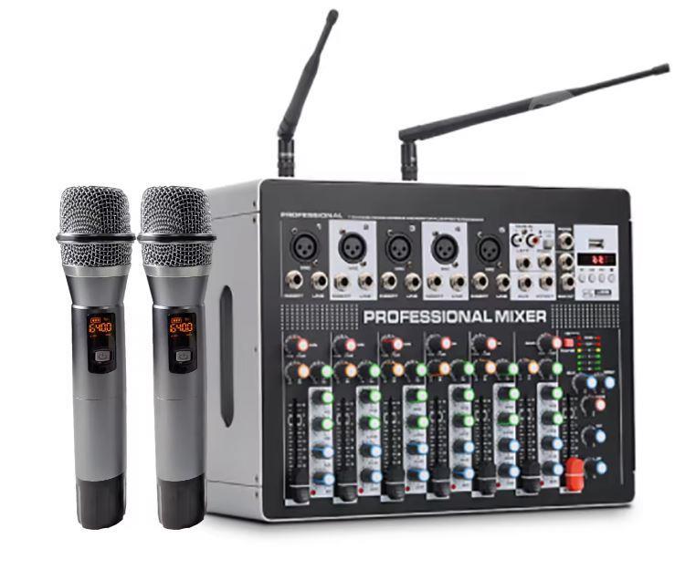Professional 7-channel mixer with Bluetooth and wireless microphones