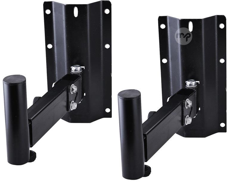 Pair of speaker mounting brackets Fvaaevc SPS-502B has a solid platform with adjustable speaker adapter. Perfect for mounting larger surround sound or bookshelf monitor speakers medium, especially for wooden or plastic speakers without mounting holes. Durable black construction, includes a pair of support for two speakers and common mounting hardware. Details A pair of speaker stands with lateral locking Easy to be installed, 360 degrees rotatable and tilted up or down 10 degrees adjustable The distance from the wall can be adjusted in the range of 7, 8-11 inches Supports up to 50 pounds; Cable management Sturdy steel structure with plate cover