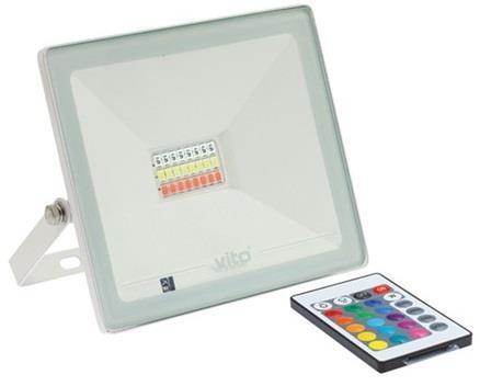 Dimmable RGB+W LED spotlight 20W 1000Lm Vito The INDUS series LED PROJECTORS with die-cast aluminum body and tempered glass diffuser offer excellent lighting performance and a lifespan of 25,000 hours. This 20W model includes RGB LEDs for a 120° lighting angle. It is ready to be used with its easy installation and maintenance. It is also dimmable and includes a remote control to manage its functions. Features Brand name Vito EAN code 6972538044372 Supplier code 3022430 Temperature (KELVIN) RGB Power (W) 20.0 Lighting angle 120° CRI 80 Power factor 0.9 IP protection IP65 ON/OFF 15000 Duration (H) 25000 Dimmable No Voltage 220V-50/60Hz Energy saving 85% Material die-cast aluminum - tempered glass Diffuser material tempered glass Color ANTHRACITE Temperature (Ta) -20°C a 50°C