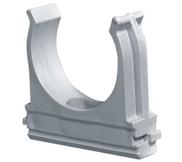 Snap tube clip diameter 25mm pack of 100 Elmark Features Brand: EC Electrochannels EAN code: 8054320283027 Vendor code: ECCF25 Material: shockproof technopolymer on PVC base Self-extinguishing V0 grade according to UL94 incandescent wire: up to 960°C Color: RAL-7035 (gray) Protection code: IP40 Standards: EN61386-1; EN61386-21
