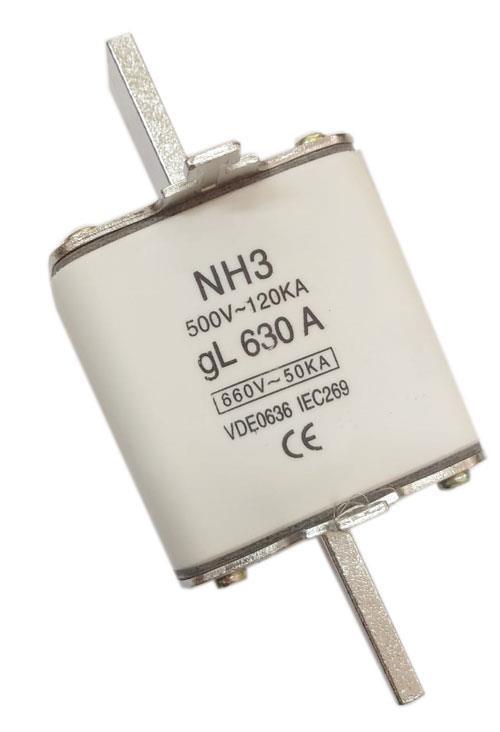 Fuse 630A gL NH3 500V 120KA FATO Rated voltage of 500V Breaking capacity at 120 kA and at rated power Details NH3 500v - 120 kA gL 630 A 660v - 50 kA VDE0636 IEC 269