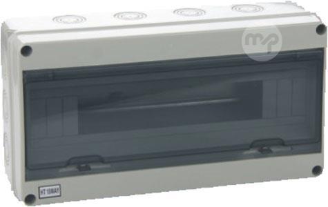 Wall Switchboard 18 modules with transparent door - small Wall-mounted switchboard 18 modules with transparent door Dimensions: 370x198x108mm Degree of protection: IP65