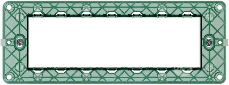 Support 7M compatible Vimar Features External dimensions: 20x7cm Internal dimensions: 15.8x4.5cm Number of seats: 7 Color: Transparent dark green 4 screws included for wall mounting EAN: 6970597463387 Manufacturer code: Z6007 Colors and shapes may vary slightly