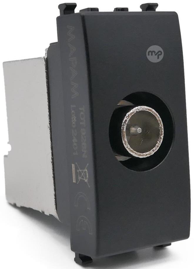 Vimar Arké compatible black satellite TV socket TV antenna socket or connector normally located on the back of the television and on a wall socket. TV socket used to connect the VHF/UHF terrestrial receiver to the antenna on the roof via a coaxial cable. This connector is used on all televisions, video recorders and various terrestrial receivers where it is necessary to connect to the terrestrial antenna normally located on the roof. A typical use of the antenna socket is to distribute the video image produced by a decoder or video surveillance cameras to the internal system. Technical features Material: Plastic and metal Black colour Manufacturer code: 926N EAN: 0793541340390 Compatible with the Vimar Arké series