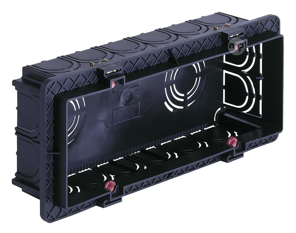 6-module flush-mounting junction box black Features Size: 17x5cm Protection: IP40 Color: black Number of modules 6 / 7 EAN code: 8022044000053