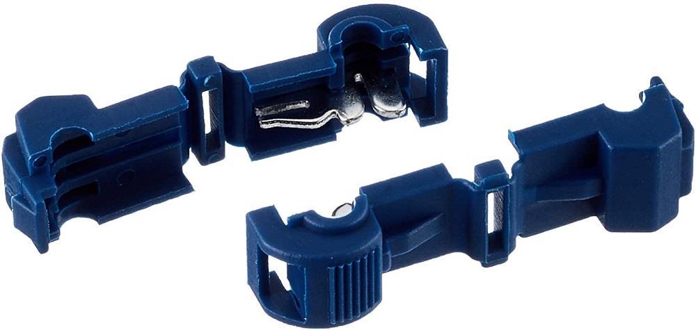 Connection clamp for blue T-wire 100pcs Features Brand Fate Vendor code T1 Pack of 100 Color blue Material: plastic with metal contact Easy to use: just insert the insulated ends of the cables into the connector up to the stop and then close the clamp. Practical clip closure: the connection clamps can be opened and closed easily thanks to the practical closure clip.