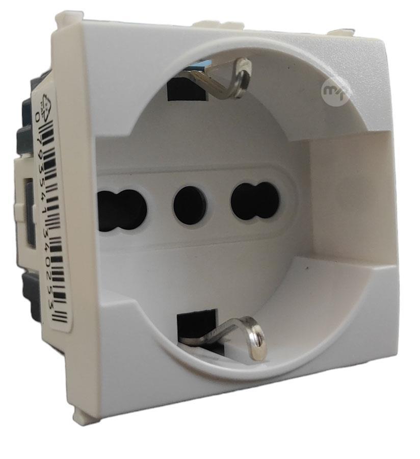 White Schuko socket 16A 250V compatible with Vimar Arké