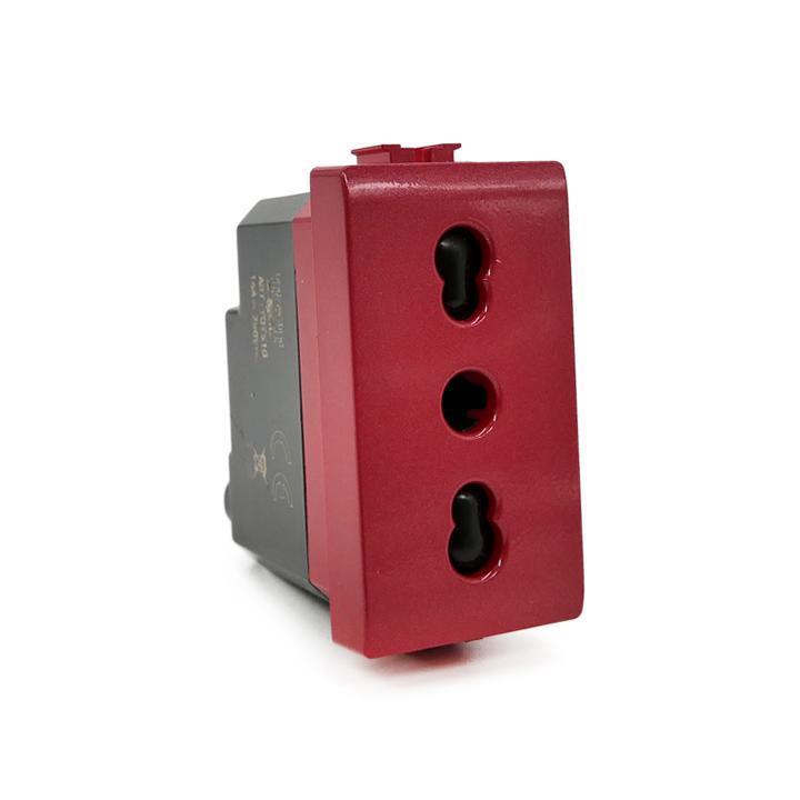 Bivalent 10-16A socket for signaling dedicated line / emergency red Matix compatible Standard Italian 2P + E dual or bypass socket. Allows you to insert both 10A plugs (small plug) and 16A (large plug). Equipped with shielded socket. For reporting dedicated or emergency lines Technical characteristics Material: Plastic Color: Red EAN: 6970597469068 Manufacturer code: 518R / Mtx Compatible with the Bticino Matix series