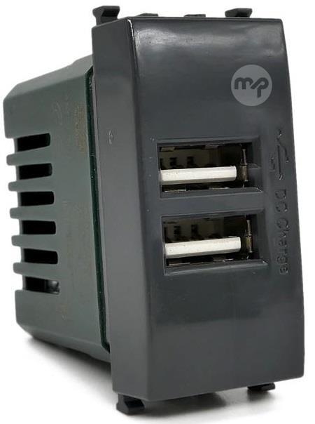 Vimar compatible black 5V 2A double USB socket power supply