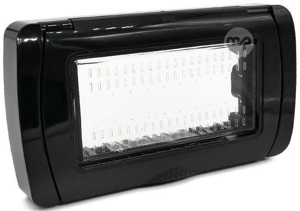 IP55 4P black idrobox plate compatible with Vimar Plana