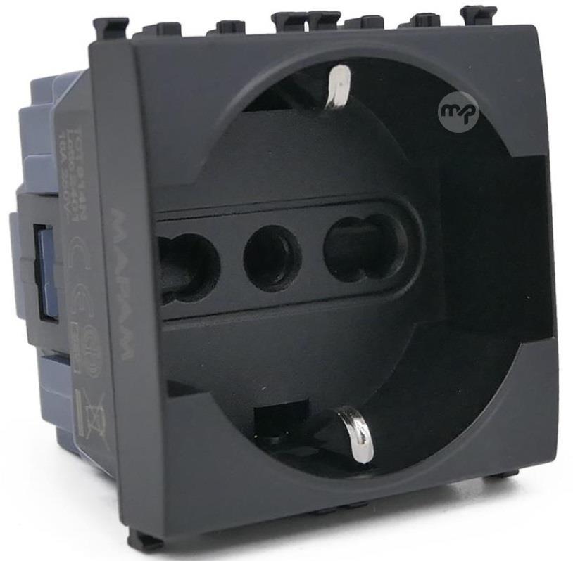 Black Schuko socket 16A 250V compatible with Vimar Arké