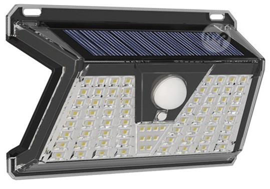3W 170Lm LED solar spotlight cold light with PIR and twilight sensor SOLIGHT series LED SOLAR FLOODLIGHTS with ABS body and PMMA diffuser feature 170Lm lighting performance and a long lifespan of 30000 hours. This 3W model includes 6400K (COLD WHITE) LEDs with a 180° beam angle. - 5.5V polycrystalline ETFE photovoltaic panel - Battery: Li-ion 18650 3.7V 2400mAh - Charging time: 6h - Discharging time: 6-8h - Autonomy: 6-8h - Function: photosensor + PIR sensor - PIR sensor detection distance: 3-5 m - Installation height: 2-3 m Mode 1The light will be on constantly Mode 2After detecting motion it will go to maximum brightness for 15 seconds and then go back to minimum. Mode 3After detecting motion it will turn on at full brightness for 15 seconds and then turn off. SOS ModeThe light will be constantly on Characteristics Brand name Vito EAN code 6972538047199 Supplier code 3210160 Temperature (KELVIN) 6400K (cold light) Power (W) 3.0 Luminous efficiency 57 CRI 80 Power factor 0.9 IP Protection IP44 ON/OFF 30000 Nominal duration (H) 50000 Light sensitivity 3-2000 Dimmable Yes Material ABS Diffuser material PMMA Color Black Dimensions (mm) 168x114mm Drums Lithium 18650 3.7V 2400mA Sensor type Twilight & PIR Lighting angle 120° Maximum detection distance 3-5m Maximum installation height 2-3m Panel material Polycrystalline silicone Charging time 6-8 Battery life 6-8 Lumen 170