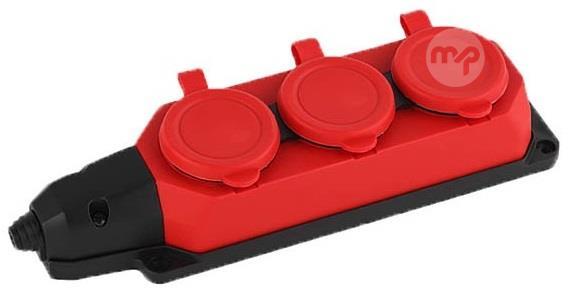Schuko power strip 3 places 2P+E IP44 red Vito