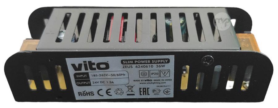 24VDC 1.5A slim transformer The ZEUS series TRANSFORMERS with aluminum body have a long life. This model is also the best solution for the best lighting performance for LED STRIPS. Installation and maintenance are easy. Characteristics Brand name Vito Supplier code 6240610 EAN code 6970233833598 Power (W) Max 36 Voltage (V) 185-265V AC-50/60Hz Electrical protection Class I Color Black Dimensions 120x41x32mm