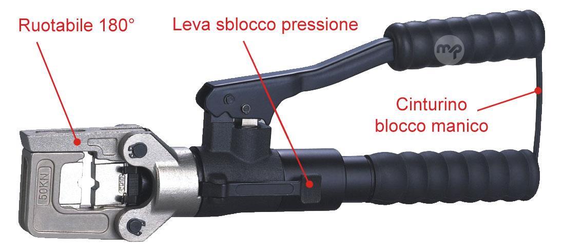 Light and small in size it is suitable for making connections on overhead power lines in general and in particular on corded type BT cables, BT cables and copper ropes. Thanks to a limited angular opening of the movable handle, which is equipped with automatic return, the operator can approach the matrixes to the connector with only one hand, using the other for positioning. The head can rotate 180 ° to allow the operator to perform the job in the most suitable position. It is equipped with a safety valve that intervenes whenever maximum pressure is reached and a pressure release device that can be operated easily and at any time. Model: HT-51 Maximum pressure (Ton): 60KN Working stroke (mm): 15mm Length 380mm Punch template: Hexagonal Weight (kg): 2.75 Punch size (mm2): 10, 16, 25, 35, 50, 70, 95, 120, 150,185, 240