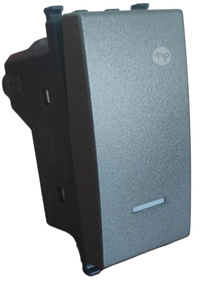 Gray single-pole switch with Vimar Arké compatible indicator light