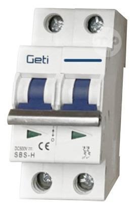 Geti 2-pole 32A thermal magnetic switch for photovoltaic systems DC bipolar switch for the protection of electrical distribution from short circuits and overloads, particularly suitable for photovoltaic systems. Simple mounting on DIN rail. Characteristics Brand: Geti EAN code: 8595563728550 Supplier code: GF-J03 number of poles: 2 Rated voltage: 500V DC Rated current: 32A characteristic: B conductor section: 2.5 -35 mm2 insulation: 1000V short circuit resistance: 6 kA surge resistance: 6 kV dimensions: 72 x 83 x 72 mm degree of protection: IP20 (for internal use only)